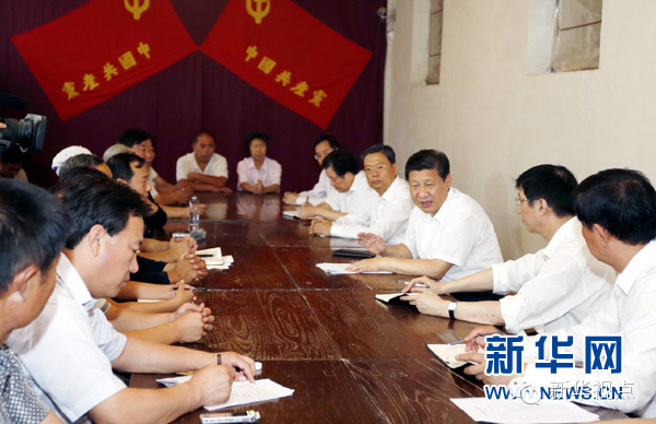 【场合】习近平来到革命圣地西柏坡,在一间长方形的土坯房——著名的九月会议旧址召开县乡村干部、老党员和群众代表座谈会。正是在这间简陋的房间里,1948年9月8日至13日,中共中央政治局召开扩大会议即九月会议,提出从根本上打倒国民党的反动统治的战略任务,要求军队向前进。会议作出关于执行请示报告制度的决议,要求各级党组织增强纪律性。