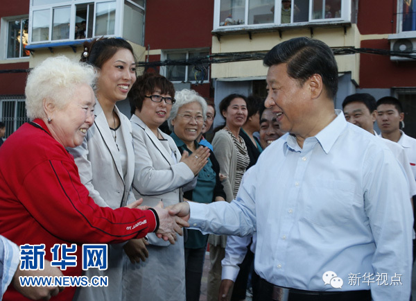 习近平在沈阳市沈河区大南街道多福社区看望居民。 新华社记者 鞠鹏 摄