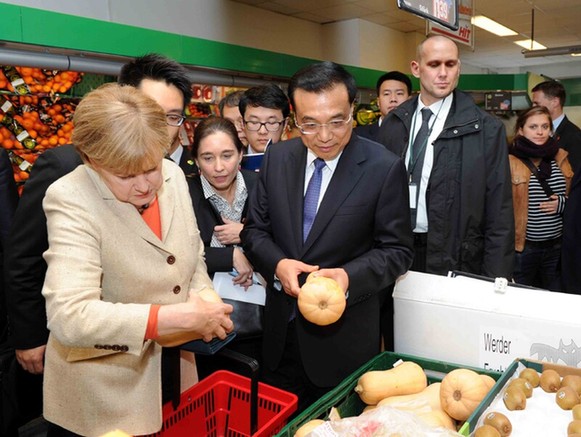在默克尔的总理府检阅完仪仗队,在红地毯的尽头,默克尔微微笑,抬起右前臂,伸出大拇指——这是对李克强的一个赞赏?这个小动作饶有趣味。在默克尔领李克强去她经常逛的一个超市,李克强要去拿提篮,默克尔摆手制止了他,她自己熟练地拎上提篮,自然而然引领着李克强走上自己熟悉的逛超市线路。很显然,无论你是否在意他们的职务,他们之间的关系是老熟人,是朋友。国与国之交往,私人之间的友谊,正是象征,不可忽略。