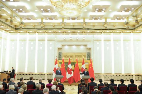 新华社北京11月8日电 据新华社“新华视点”微博报道,国务院总理李克强8日下午在人民大会堂与加拿大总理哈珀共见记者。李克强表示,目前中国已成为加拿大第二大贸易伙伴、第二大进口来源地和第二大出口市场,加拿大是中国境外投资第二大目的地。中方愿同加方共同推动两国合作向着更大规模、更高水平、更优结构发展,力争中加合作的四个“第二”成为四个“第一”。