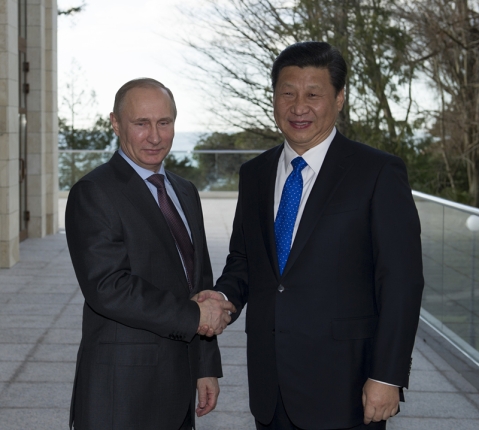 (2月6日,国家主席习近平在俄罗斯索契会见俄罗斯总统普京。摄影 黄敬文)