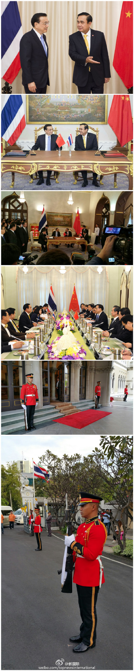 新华社北京12月19日电 据新华社“新国际”微博报道,李克强19日下午在曼谷会见泰国总理巴育。他们共同见证了中泰铁路和农产品合作谅解备忘录的签署。这两个备忘录是去年两国所签相关协议的扩充、延伸和进一步确认。李克强说两国将在泰建设长达800公里的首条标准轨铁路,这将有利于整个地区互联互通。