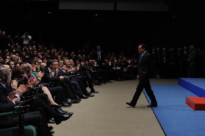李克强出席中国—中东欧国家第四届经贸论坛并致辞。 新华社 饶爱民 摄