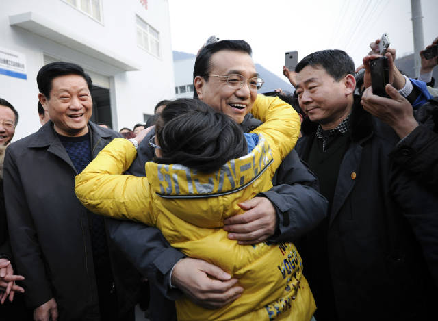 1月26日,李克强总理到陕西商洛云盖寺镇移民安置社区看望群众时,初一女孩江欣桐挤到总理面前问:“爷爷,我能抱一下您吗?”李克强笑着说:“没问题!”