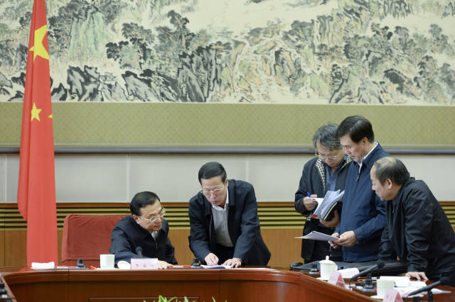 4月18日,李克强总理在国务院第一会议室主持召开会议结束后,与会人员大多走了,李克强与副总理张高丽、国务委员杨晶等仍在“会”中。
