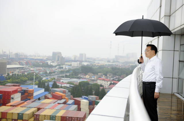 9月19日,李克强总理在上海自贸区挂牌一周年前夕,在外高桥物流中心考察自贸区新貌。