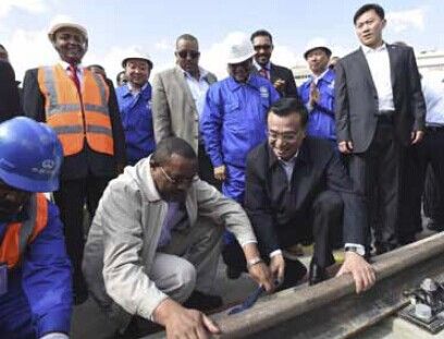 2014年5月5日,国务院总理李克强考察亚的斯亚贝巴轻轨项目,埃塞俄比亚总理海尔马里亚姆陪同。看到中埃双方员工正在铺轨作业,李克强同海尔马里亚姆一起拿起扳手,拧紧螺丝。
