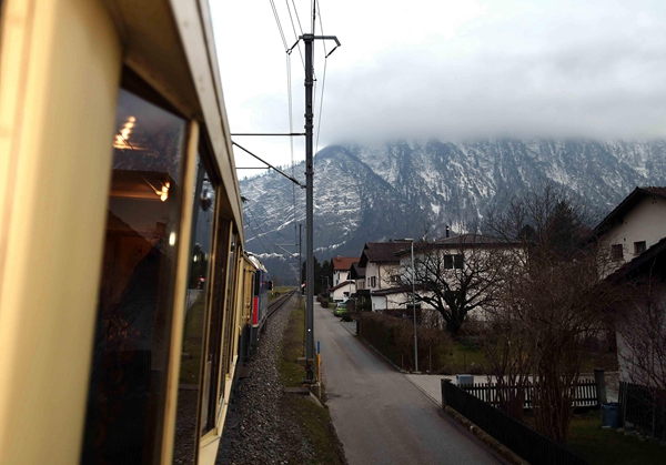 (克强总理乘坐的专列驶往达沃斯,铁路依山上行,窗外景色怡人。摄影:李涛)