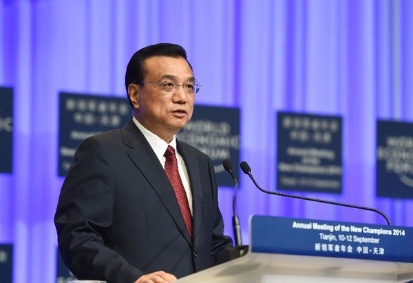李克强总理出席2014夏季达沃斯论坛开幕式并致辞。新华社记者 李学仁 摄