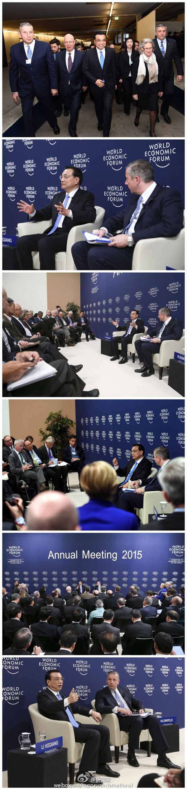 新华社北京1月21日电 据新华社“新国际”微博报道,当地时间21日下午,李克强总理在瑞士达沃斯出席与世经论坛工商理事会代表对话会,他详细回答了多位代表关于中国改革发展问题的提问,现场多次爆发岀热烈的掌声。100多位全球工商界领袖与会。
