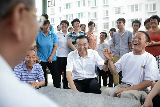 2014年7月24日,李克强总理与德州袁桥社区的“进城”居民围坐拉家常。