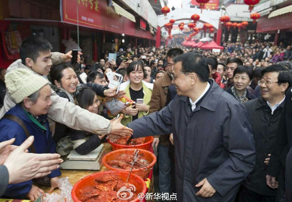 新华社北京2月13日电 据新华社“新华视点”微博报道,13日上午,李克强来到贵州黎平县大市场考察。