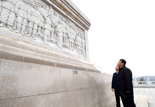 习近平向陕甘边革命根据地英雄纪念碑敬献花篮