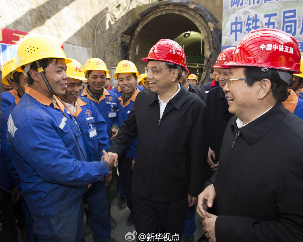 新华社北京2月15日电 据新华社“新华视点”微博报道,14日,李克强来到贵阳轻轨1号线施工现场,考察城市基础设施建设。总理戴上安全帽走进隧道,询问工程进度。多数施工者来自农村,李克强称赞他们是城市功臣。他叮嘱省领导,等这条轻轨修通后,你们一定要请回这些一线建设者,乘坐首班列车。