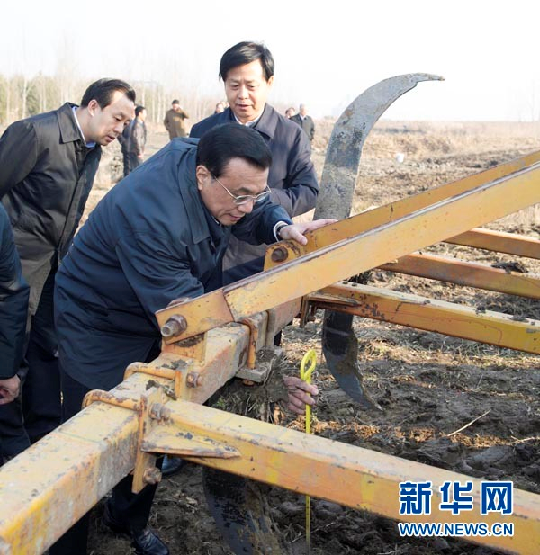 (2013年11月5日一早,李克强来到抚远县红旗村查看耕地深松情况。他说,发展现代农业,推进适度规模经营,现代大型农机才有用武之地。)
