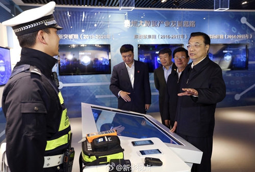 图为14日,李克强在贵州考察北京·贵阳大数据应用展示中心。