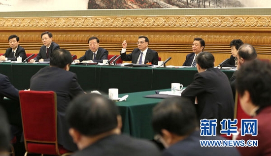 3月7日,中共中央政治局常委、国务院总理李克强参加十二届全国人大三次会议江苏代表团的审议。 新华社记者马占成摄