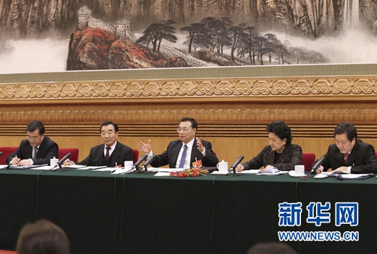 | 李克强等来到代表团与代表一起审议 2013-03-07 |