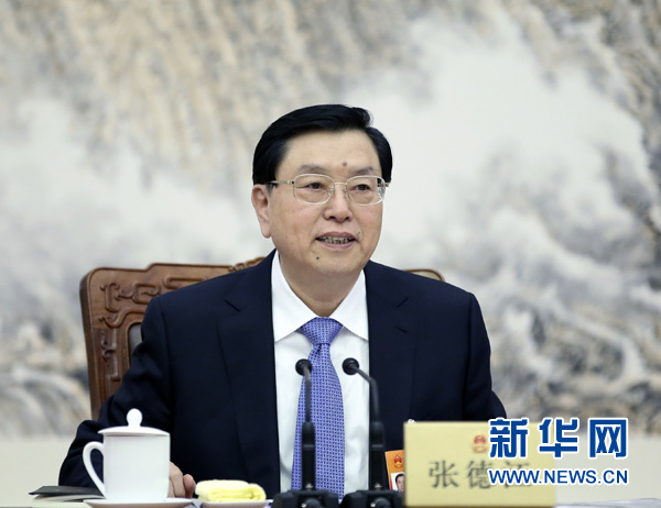 3月11日,十二届全国人大三次会议主席团常务主席第一次会议在北京人民大会堂举行。十二届全国人大三次会议主席团常务主席、全国人大常委会委员长张德江主持会议。新华社记者 兰红光 摄