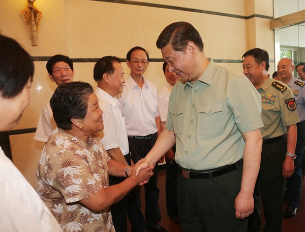 (2014年7月30日,福州,习近平与福建双拥模范代表亲切交谈。新华社记者 李刚 摄)
