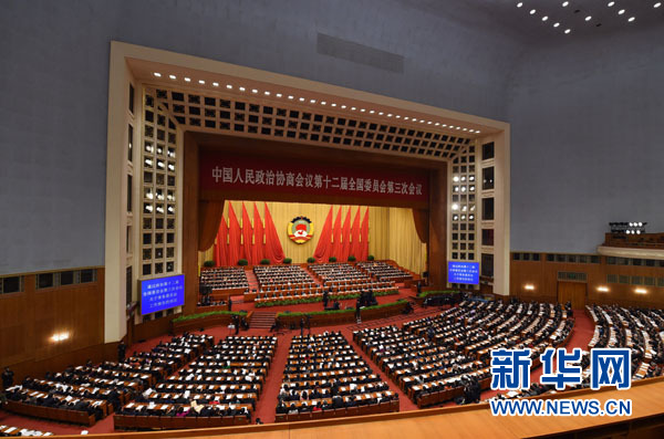 3月13日,全国政协十二届三次会议在北京人民大会堂举行闭幕会。新华社记者陈晔华摄
