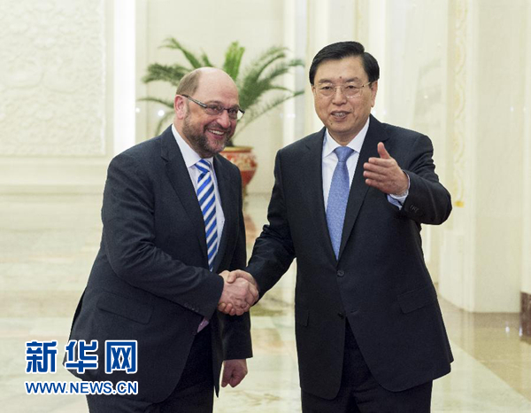 新华社北京3月16日电(记者 郝亚琳)全国人大常委会委员长张德江16日下午在人民大会堂与欧洲议会议长舒尔茨举行会谈。