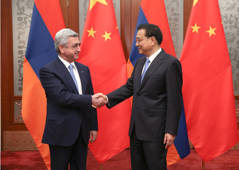 国务院总理李克强26日下午在人民大会堂会见来华进行国事访问并出席博鳌亚洲论坛2015年年会的亚美尼亚总统萨尔基相。