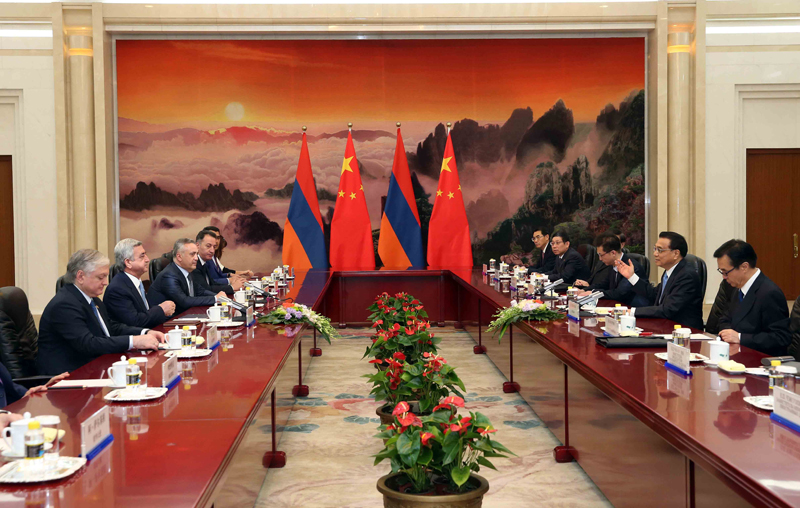 李克强指出,中国在诸多领域拥有先进富余产能,在基础设施建设方面积累了丰富经验,装备性价比高。中方愿同贵国的新发展规划相契合,开展铁路、公路、核电、电力等领域合作。同时帮助亚方建设钢铁、水泥、平板玻璃等生产线,就地取材开展基础设施建设,促进亚美尼亚工业化进程,实现互利双赢。要更好发挥两国经贸合作委员会的作用,促进双方经贸、人文、地方等交流与合作。