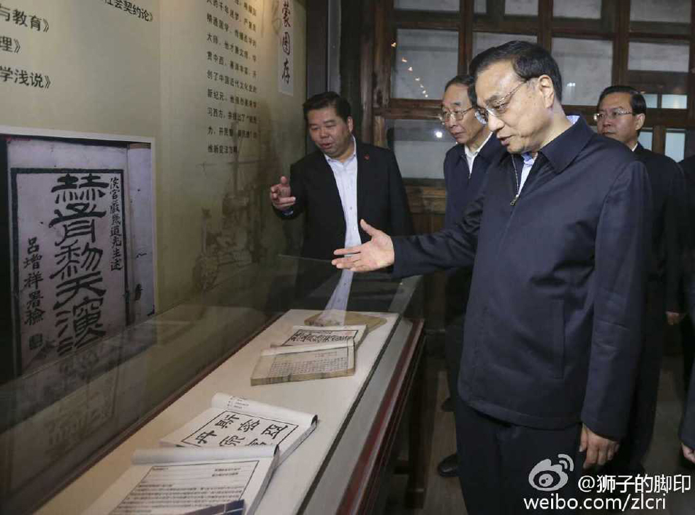 李克强24日考察福州期间专程来到严复故居。工作人员说,《政治学》等经典名著都由严复首次翻译引入国内。总理补充道:还有《国富论》和《论法的精神》。他指着展柜内的《天演论》说,严复的翻译确实做到了信、达、雅,这本书我插队时也读过。