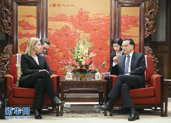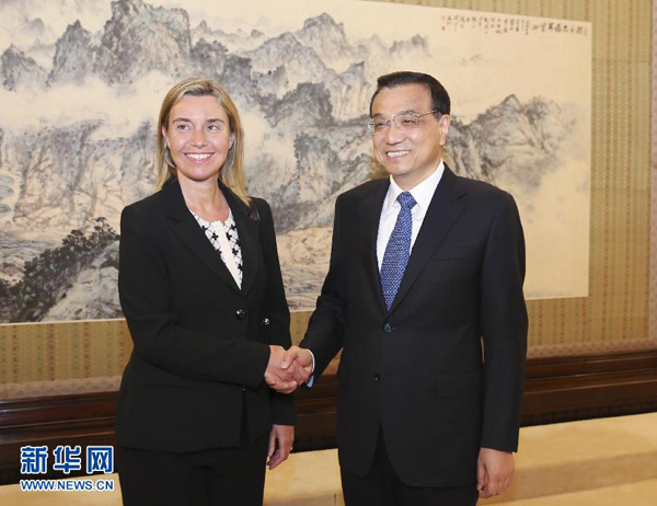 李克强会见欧盟委员会副主席、外交和安全政策高级代表莫盖里尼