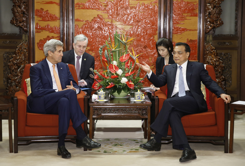 国务院总理李克强16日下午在中南海紫光阁会见美国国务卿克里。