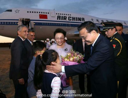 新华社北京5月19日电 据新华社“新国际”微博报道,当地时间18日18时许,李克强走出专机舱门,踏上巴西首都巴西利亚的红地毯,正式开始拉美四国首访。总理从北京出发,经停爱尔兰,再到巴西利亚,总飞行时间已近22小时。 未来三天,两大金砖国家将再度握手,重点在产能和装备制造等领域开展合作。