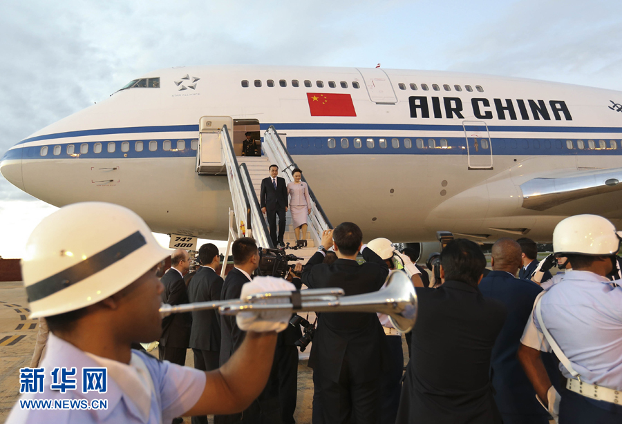 新华社巴西利亚5月18日电(记者俞铮 刘彤)应巴西联邦共和国总统罗塞夫邀请,国务院总理李克强于当地时间18日下午乘专机抵达巴西利亚空军基地,开始对巴西进行正式访问。李克强总理夫人程虹同机抵达。