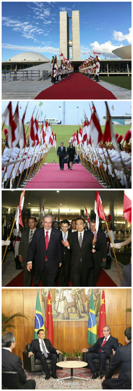 新华社北京5月20日电 据新华社“新国际”微博报道,当地时间19日下午,李克强总理在巴西利亚国会大厦会见巴西众议长库尼亚时说,中巴互为战略伙伴,双方开展的全方位合作是以友谊为纽带,以民意为基础的。中方愿同巴方深化政治互信,加强务实合作,密切人文交流。支持中巴立法机构不断加强合作和经验交流。