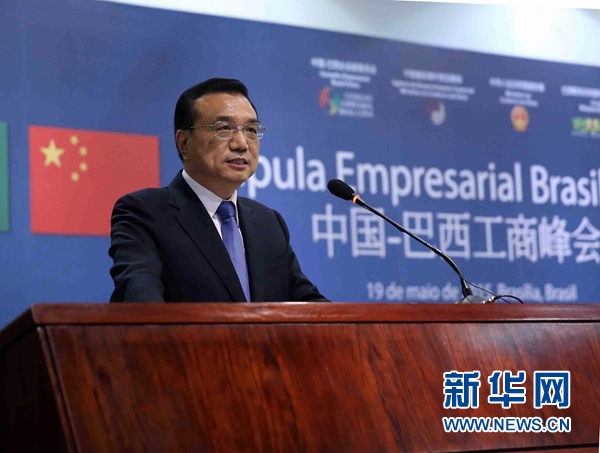 新华社巴西利亚5月19日电(记者侯丽军 尚军)国务院总理李克强当地时间19日中午在巴西利亚与巴西总统罗塞夫共同出席中巴工商界峰会并致辞。