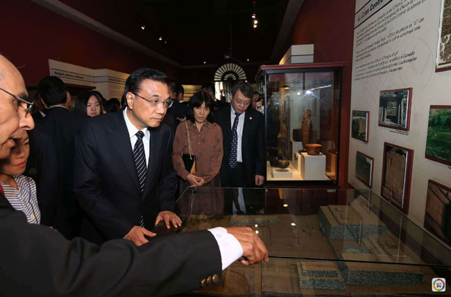 23日上午,李克强总理在秘鲁国家考古、人类学和历史博物馆出席中国—拉丁美洲文明互鉴系列活动