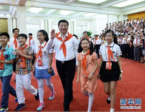 习近平指出,培养好少年儿童是一项战略任务,事关长远。长期以来,一代又一代少先队辅导员、少年儿童工作者为国家和民族未来、为亿万少年儿童健康成长,作出了重要贡献,党和人民感谢你们。希望少先队组织牢记使命,教育引导亿万少年儿童为实现中华民族伟大复兴的中国梦时刻准备着。各级党委和政府、社会各界都要重视培育未来、创造未来的工作,关心爱护少年儿童,重视支持少先队工作,为少年儿童办实事,让孩子们成长得更好。每一位家长、每一个成年人都要为孩子们做出榜样。