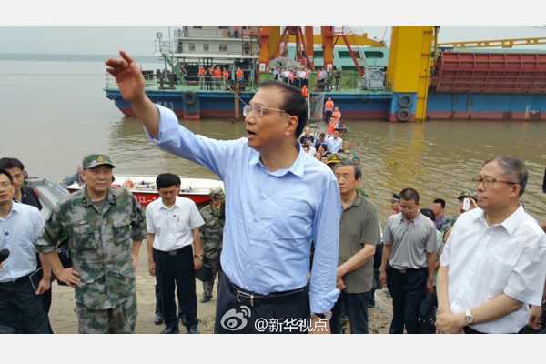 新华社北京6月2日电 据新华社“新华视点”微博报道,李克强从指挥船上走到岸边,对在场的救援人员说,要根据刚才的成功经验,抓紧时间搜救乘客,这是当前第一要务,后续还有大量工作,你们肩负重担,希望继续发扬人民利益高于一切的精神,尽最大努力,把救人等各项工作做好!