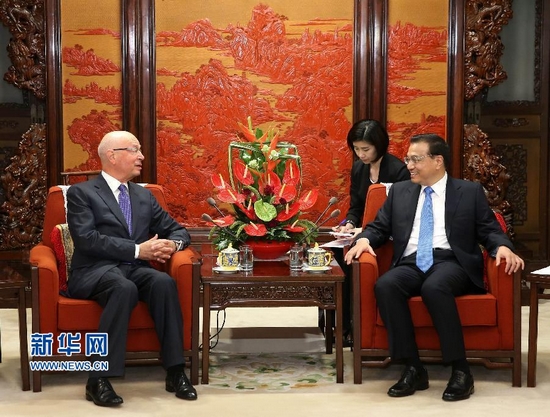 6月17日,国务院总理李克强在北京中南海紫光阁会见世界经济论坛主席施瓦布。 新华社记者 庞兴雷 摄