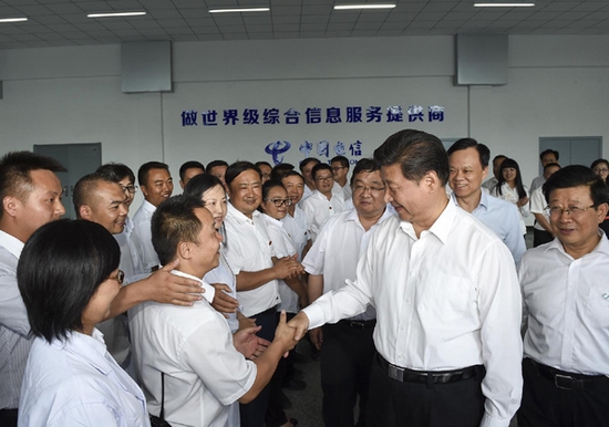 三大运营商的数据中心是贵州大数据产业的重要组成部分。习近平来到中国电信云计算贵州信息园,在运维监控中心观看“互联网+”基础能力建设和“教育云”等实际应用的演示,还走进数据机房。企业负责人介绍,这是第四代数据机房,实现了国产化、模块化,一个机房有176个架子近2000台服务器,园区建成后服务器将达80万台以上。总书记对此表示肯定。