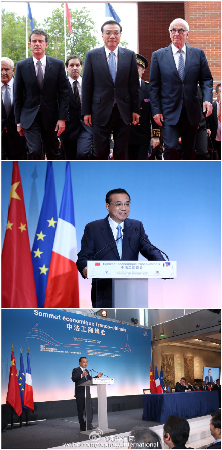 新华社北京7月3日电 据新华社“新华国际”微博报道,李克强总理2日在法国图卢兹与法国总理瓦尔斯共同出席中法工商峰会并致辞。李克强说,中国经济上半年总体平稳,结构调整步伐加快,二季度主要经济指标、先行指标趋势向好。中国经济有能力实现7%左右的经济增长目标,长期保持中高速增长,迈向中高端。