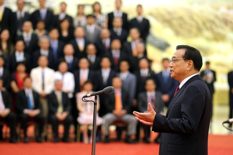国务院总理李克强6日下午在北京会见出席首届世界华侨华人工商大会的全体代表,并发表重要讲话。