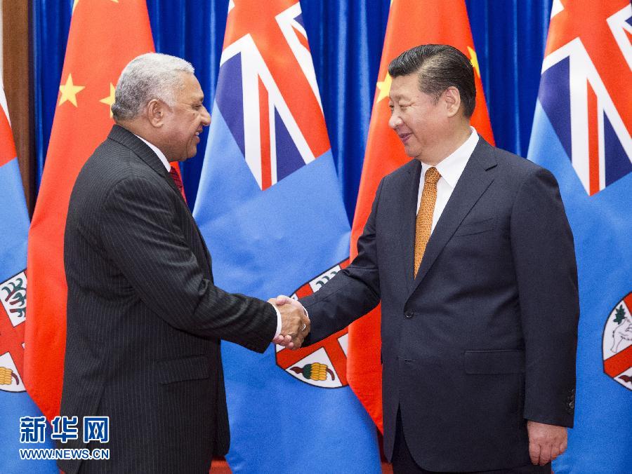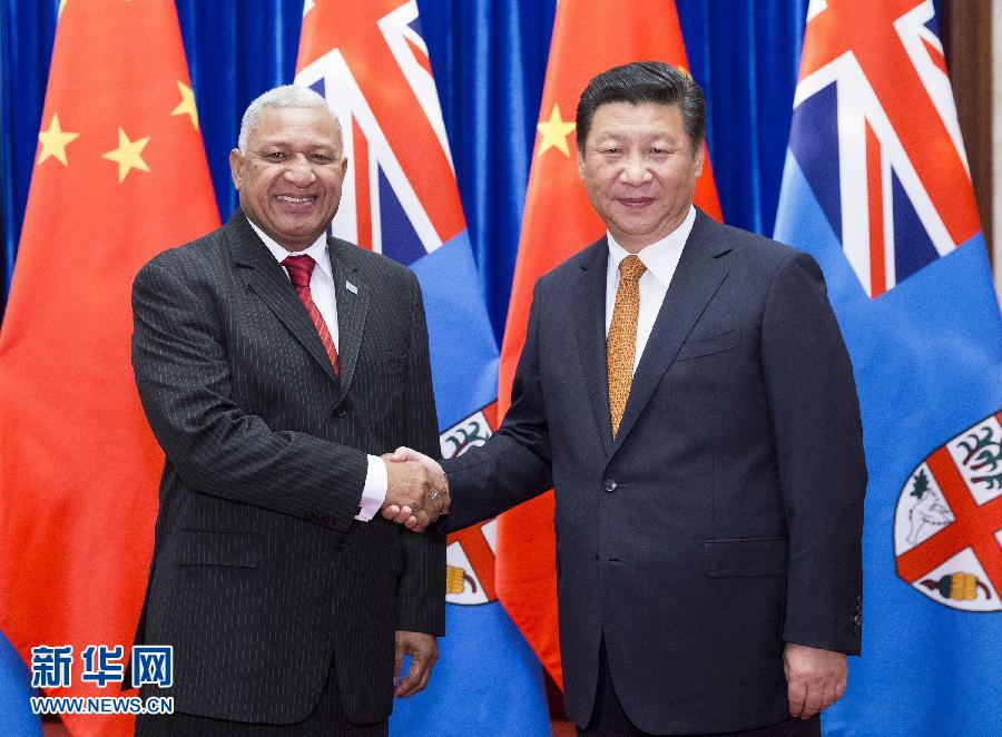 习近平表示,去年我对斐济进行了成功的国事访问,我们共同商定建立相互尊重、共同发展的战略伙伴关系,为两国关系未来发展指明了方向。斐济是第一个同新中国建交的太平洋岛国。建交40年来,两国关系得到长足发展。两国高层和各级别交往频繁,贸易投资、经济技术、司法执法合作稳步推进,地方、人文、两军交流更加活跃,双方在国际和地区事务中保持着良好沟通和协调。事实证明,中斐关系发展给两国人民带来实实在在的利益。中国尊重斐济人民自主选择适合本国国情的发展道路,支持斐济政府推进经济社会发展和改善民生的努力,支持斐方在国际和地区事务中的合理诉求。