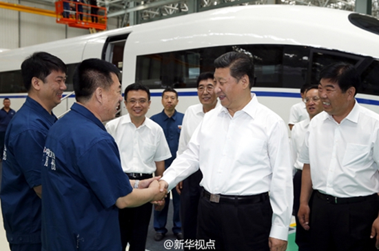 7月16日至18日,中共中央总书记、国家主席、中央军委主席习近平在吉林调研。这是7月17日,习近平在中国中车长春轨道客车股份有限公司考察。新华社记者 姚大伟 摄