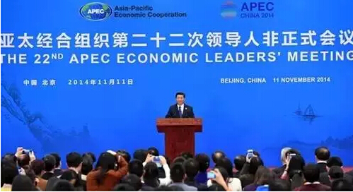 图为:习近平在亚太经合组织第二十二次领导人非正式会议上发表重要讲话。