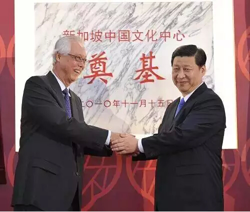 图为:习近平与吴作栋出席新加坡中国文化中心奠基仪式