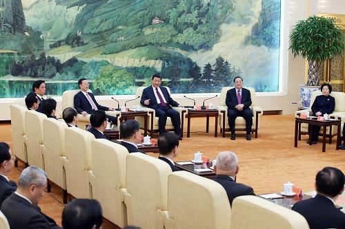 2015年2月11日,习近平、俞正声、张高丽等在北京人民大会堂同党外人士欢聚一堂,共迎新春。新华社记者 姚大伟摄