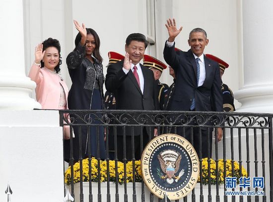 9月25日,中国国家主席习近平在华盛顿白宫南草坪出席美国总统奥巴马举行的欢迎仪式。 新华社记者 庞兴雷 摄