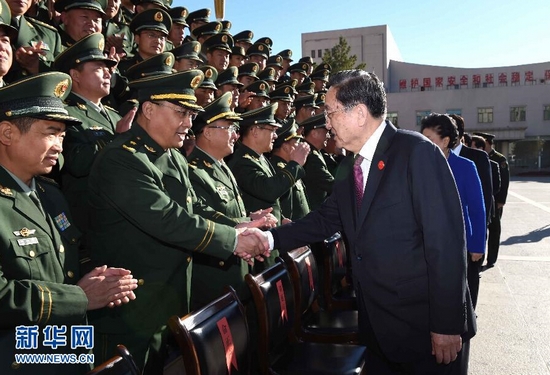 俞正声慰问新疆军区指战员、新疆生产建设兵团干部职工、武警官兵和政法干警代表