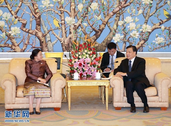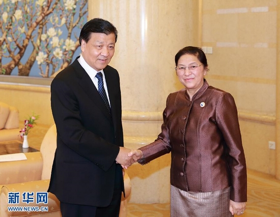 10月14日,中共中央政治局常委、中央书记处书记刘云山在北京会见前来出席亚洲政党丝绸之路专题会议的老挝人革党中央政治局委员、国会主席巴妮。新华社记者丁海涛摄